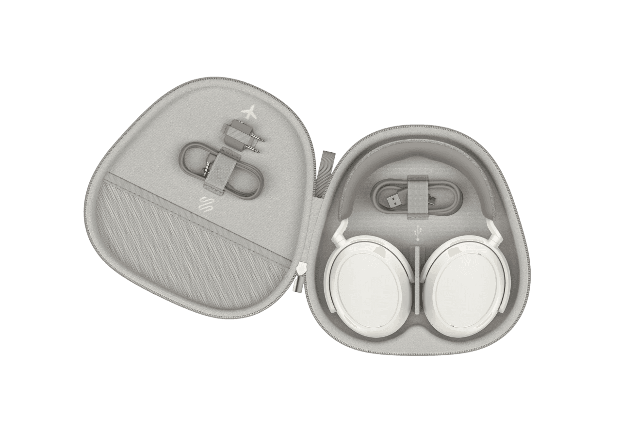 Беспроводные наушники Sennheiser Momentum 4 Wireless (Белые) — это флагманские полноразмерные наушники, ориентированные на максимально качественное звучание и длительное использование. Модель сочетает фирменную аудиофильскую подачу, эффективное шумоподавление и одну из лучших автономностей на рынке. ⸻ Основные характеристики Тип устройства: Полноразмерные беспроводные наушники (over-ear) Динамики: 42 мм Подключение: Bluetooth 5.2 (SBC, AAC, aptX Adaptive) USB-C (аудио и зарядка) Аудиокабель 3.5 мм Совместимость: Android, iOS, ПК, ноутбуки ⸻ Звук и технологии • Фирменное звучание Sennheiser — детализированное и сбалансированное • Поддержка aptX Adaptive — высокое качество передачи звука • Широкая звуковая сцена и точная передача инструментов • Настройка эквалайзера через приложение Smart Control • Подходит для музыки высокого качества и стриминга ⸻ Шумоподавление и режимы • Адаптивное активное шумоподавление (ANC) • Эффективное подавление шума транспорта и города • Режим прозрачности (Transparency Mode) • Автоматическая адаптация к окружающей среде ⸻ Автономность • До 60 часов работы — один из лучших показателей в классе • Быстрая зарядка: 10 минут = до 6 часов воспроизведения • Зарядка через USB-C ⸻ Микрофоны и связь • Система микрофонов для звонков и ANC • Чёткая передача речи даже в шумной среде • Мультипоинт — подключение к двум устройствам • Стабильное Bluetooth-соединение ⸻ Управление • Сенсорное управление на чашах • Управление музыкой, звонками и ANC • Поддержка голосовых ассистентов • Гибкая настройка через приложение ⸻ Дизайн и комфорт • Минималистичный современный дизайн • Мягкие амбушюры и удобная посадка • Подходят для длительного использования • Лёгкая конструкция и складной механизм ⸻ Комплектация • Sennheiser Momentum 4 Wireless • Кабель USB-C • Аудиокабель 3.5 мм • Чехол • Документация